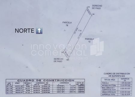 El predio se encuentra a tan solo 66 m de la carretera. Cuenta con derecho de paso en ambos extremos (al Noreste y Suroeste), lo que facilita el acceso y salida vehicular. A 100m de paso peatonal y parada de camiones. Medidas: